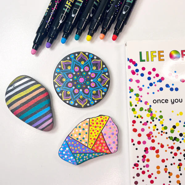 Create dot artwork without any extra tools! Perfect and uniform dots every time, Life of Colour's dot paint pens easily make any satisfying craft dream a reality.
