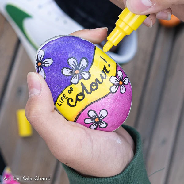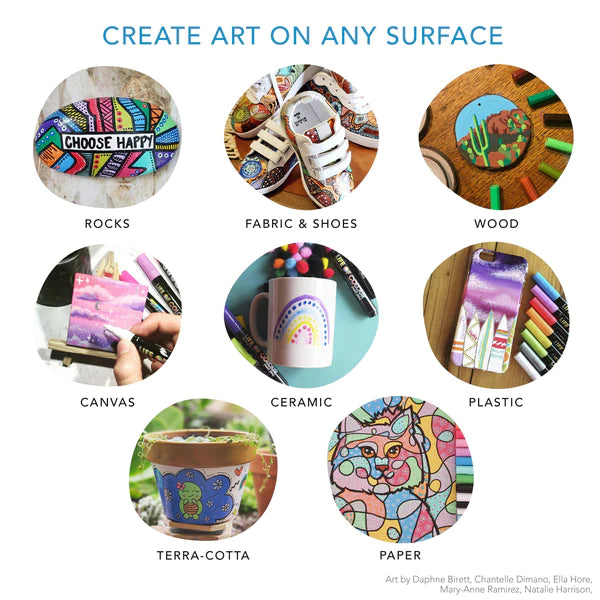 - Set includes 12 vibrant, highly-pigmented, water-based paint pens filled with acrylic paint