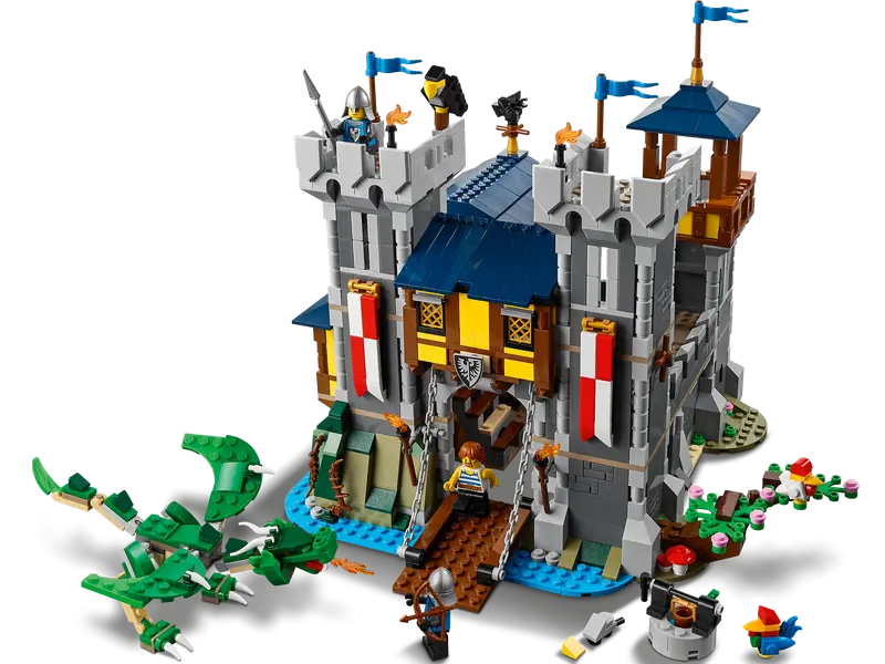 Kids will love taking a trip back in time with this brilliantly detailed LEGO® Creator 3in1 Medieval Castle (31120). It’s packed with all they need to create captivating stories – a 2-floored Castle toy with an opening gate, water mill, prison, king’s room, 3 minifigures, dragon toy, 3 chickens and a rat.