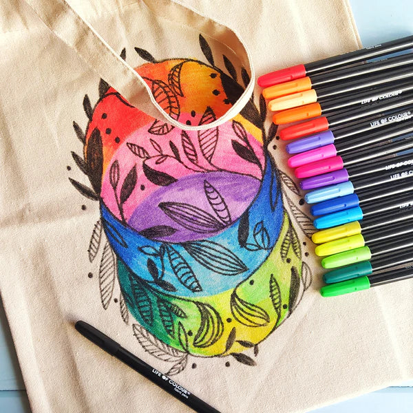 Ever wanted to spruce up your wardrobe with a personal touch? Life of Colour's permanent fabric pens are perfect for textile art on shoes, tote bags, shirts, jackets, hats and table-cloths.